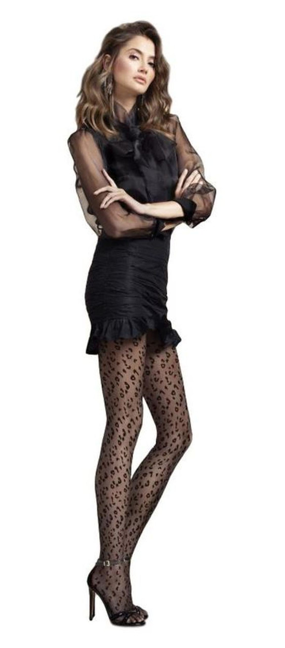 Stylish leopard patterned pantyhose that offer a t-band design with comfortable ribbing, flat seam and invisibly reinforced toe. Cotton gusset in sizes 3 and 4, double cotton gusset in size 5. Available in two colors: pink/black - pink leopard spots on a black leg and black - black leopard spots on a black leg. This style is available in newly available size 5.